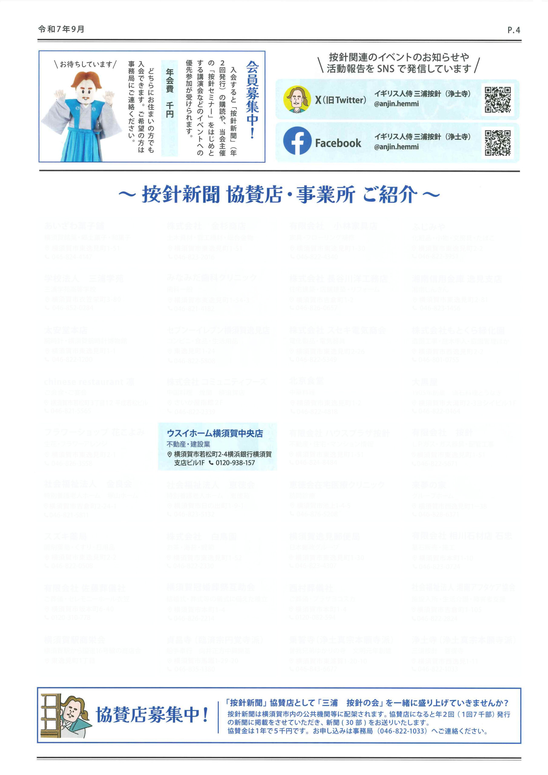 地域密着企業No.1を目指すウスイホームでは、地域貢献活動の一環として、三浦 按針の会発行の「按針新聞 第34号」へ広告協賛しています。