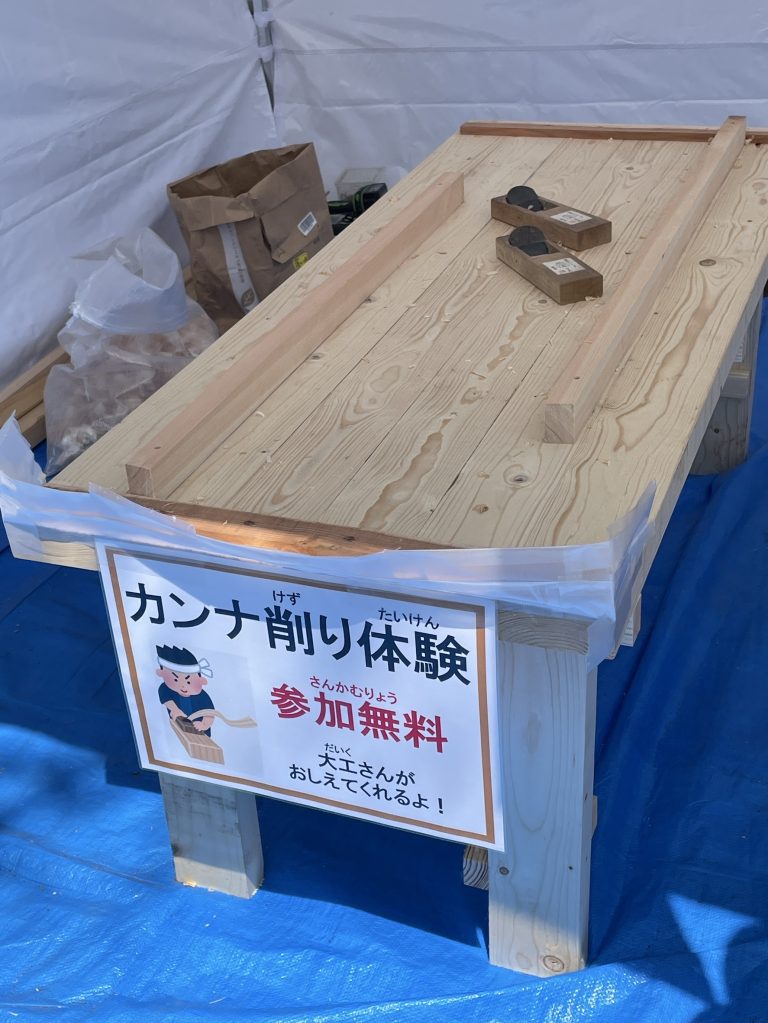 4/12-13(土・日)第一カッターきいろ公園(茅ヶ崎中央公園)で開催された「いちの市」イベントに協賛し、「カンナ削り体験」ブースを出展いたしました。