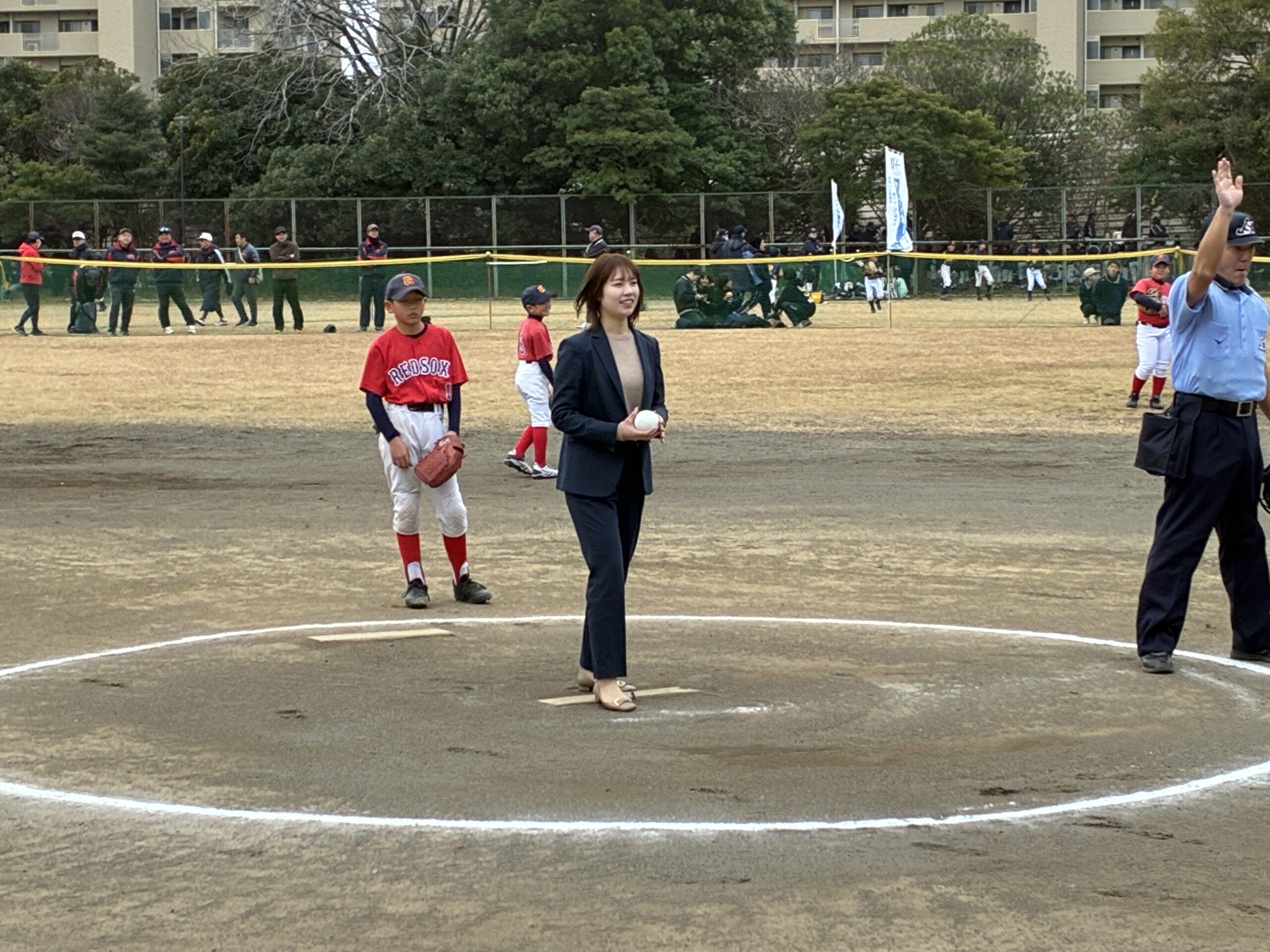 当日は、金沢文庫店店長の東海林が開会の挨拶を行い、始球式は同連盟のOGである同店社員が務めました。